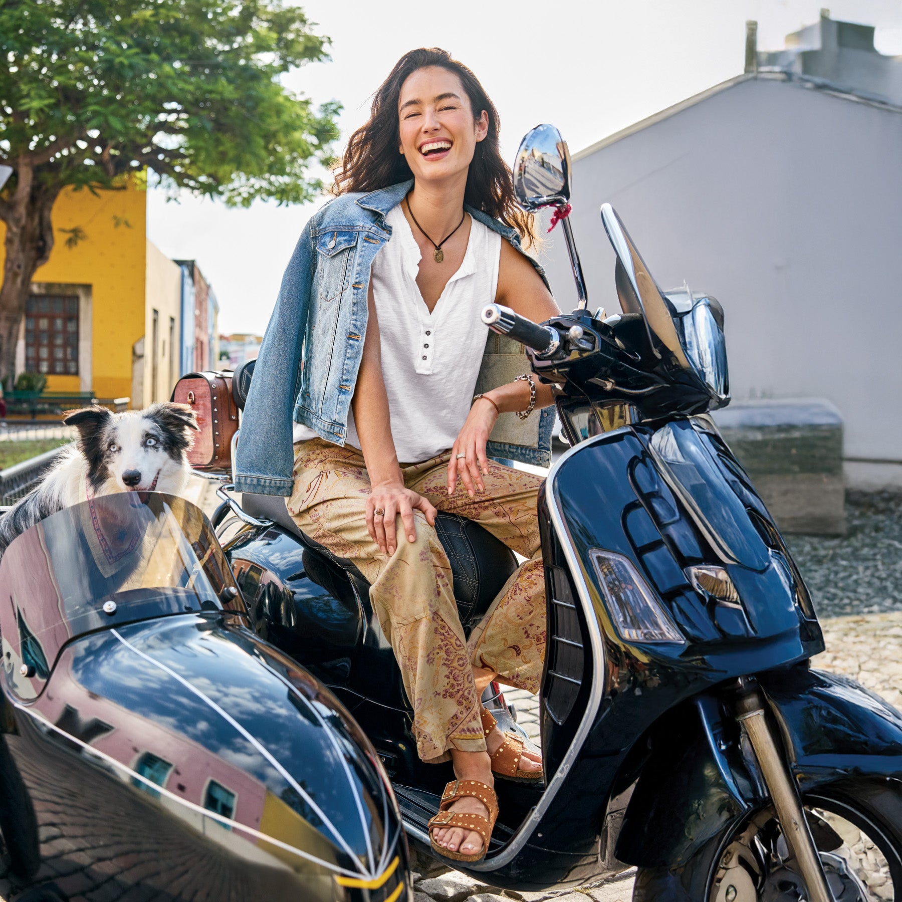A charming mixed-print bandana pattern graces our flowing. straight-leg Ashanti Pants. So comfortable and flattering with antiqued silver snap closure and drawstring tie at elastic waist with zip fly and slant front pockets. Tencel?. Machine wash. Imported. Exclusive. Sizes 2?C16. 27 inseam.