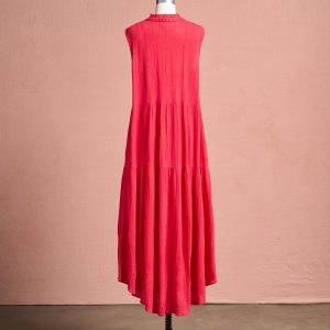 Feel your best in our easy. sleeveless crinkle textured dress with tonal embroidery at the placket and a feminine ruffle detail at the neckline. Two tiers. side seam pockets. Cotton. Machine wash. Imported. Exclusive. Sizes XS (0-2). S (4-6). M (8-10). L (12-14). XL (16-18). XXL (20-22). Approx. 53l.