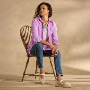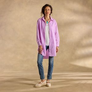 Just the right blend of comfort and style our oversized tunic is simple yet elegant—finished in special details. Chest patch pocket with pick-stitching. two side seam pockets and contrast print cuffs. Cotton. Hand wash. Imported. Exclusive. Sizes XS (0–2). S (4–6). M (8–10). L (12–14). XL (16–18). XXL (20–22). Approx. 33l.