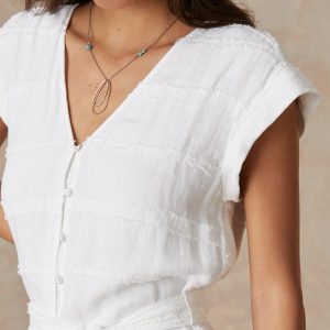 This flirty. wear-anywhere dress is handcrafted and features a button-down style. subtle stripe and self tie. Linen/rayon/cotton. Machine wash. Sizes XS (0-2). S (4-6). M (8-10). L (12-14). Approx. 37l.
