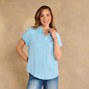This effortless staple in super soft. garment dyed. slub knit cotton makes looking good look easy with rolled sleeves. shell buttons and a relaxed fit. Cotton. Machine wash. Imported. Sizes XS (0 to 2). S (4 to 6). M (8 to 10). L (12 to 14). XL (16). XXL (18). Approx. 27.25l.