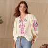 Slip into this sleeveless cotton gauze popover tank. with pops of colorful geometric embroidery throughout and smoked shell button placket. Machine wash. Imported. Exclusive. Sizes XS (0–2). S (4–6). M (8–10). L (12–14). XL (16–18). XXL (20–22). Approx. 23l.